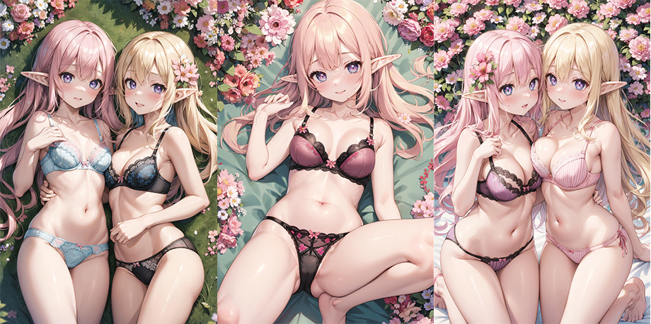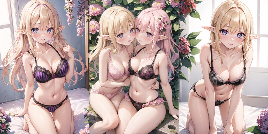 大好きなエルフちゃんたちに可愛い下着を着ててもらいました❤😊結構色んな色のいろんなパターン用意しました。全部かわいくてエッチな下着❤私は下着フェチなので、とても眼福です。